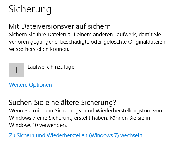 Methode 2. Windows 10 bestimmte Ordner mit dem Dateiversionsverlauf sichern