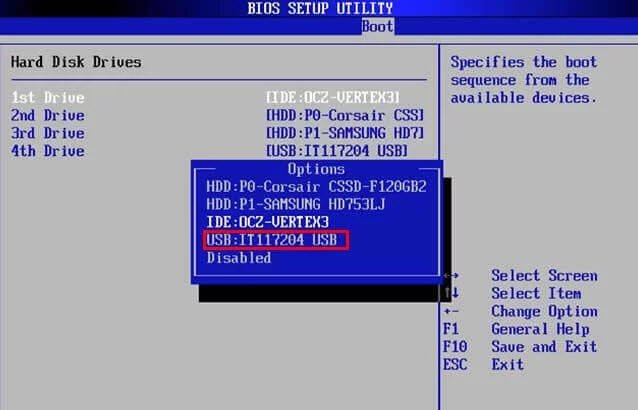 Mothode 2: Stellen Sie sicher, dass das USB-Laufwerk als erste Startoption eingestellt ist