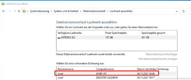Da es hier um die Wiederherstellung vorhandener Daten von einem Windows 10 auf einem neuen Computer geht, gehe ich davon aus, dass Sie Ihre Dateien bereits mit Dateiversionsverlauf auf einem externen USB-Stick gesichert haben. Bevor wir beginnen, müssen wir einige Vorbereitungen treffen: