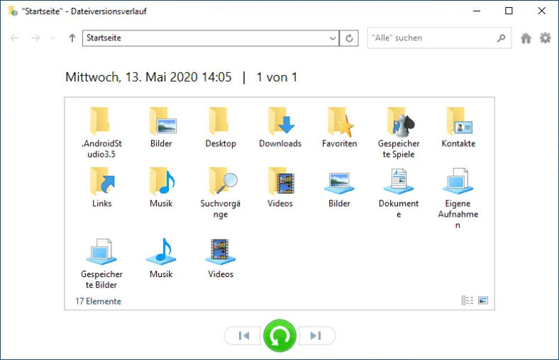 Dateiversionsverlauf kann neue oder geänderte Dateien alle 10 Minuten sichern. Die Versionierung ermöglicht den Zugriff auf Versionen wichtiger Dateien, die möglicherweise schon seit Jahren existieren. Sie können problemlos Dateien von vor 15 Minuten, vor zwei Wochen oder vor einem Jahr (im Juni letzten Jahres) wiederherstellen.