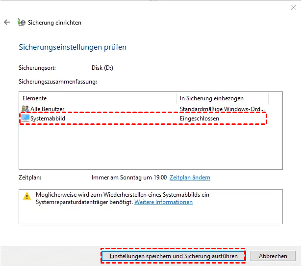 Schritt 3. Markieren Sie dann „Auswahl durch Windows (empfohlen)“. Es wird grundsätzlich Systemabbild enthalten.
