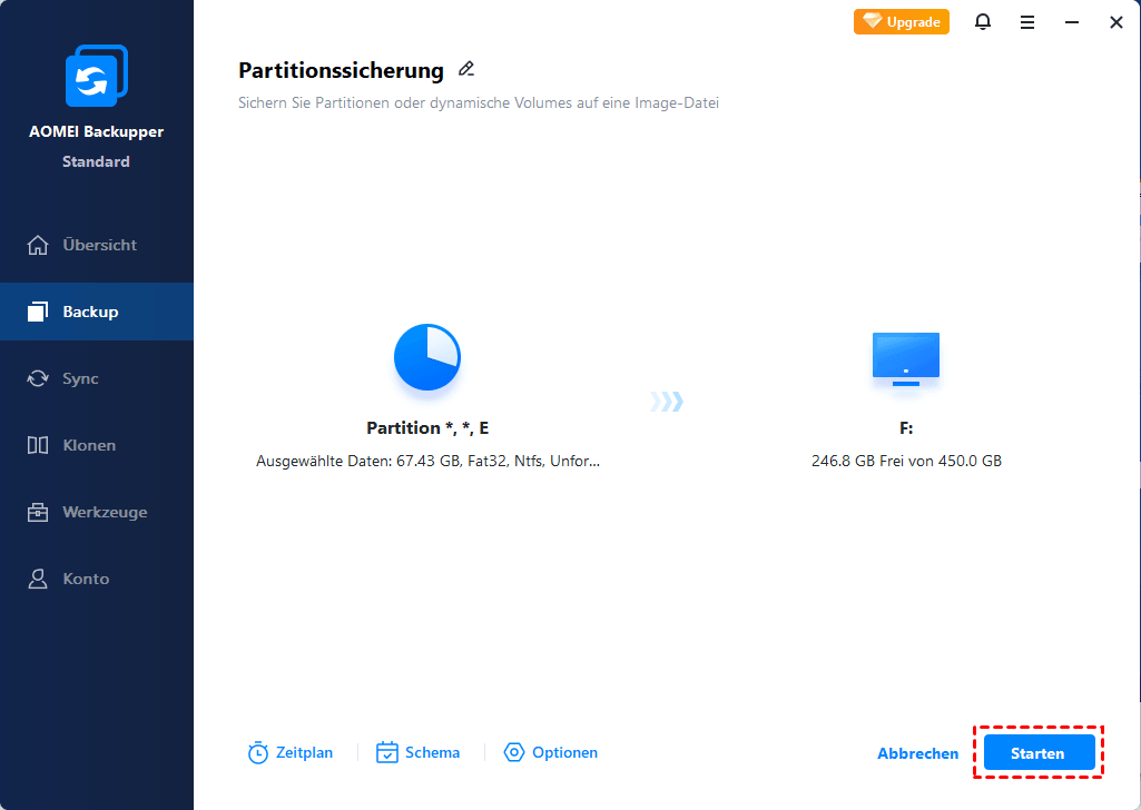 5. Klicken Sie auf „Starten“, um den Sicherungsvorgang zu beginnen.