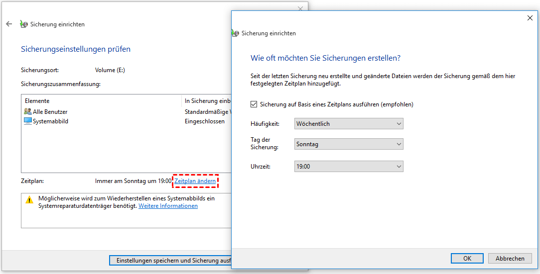 2. Klicken Sie auf Zeitplan, damit die Sicherung täglich/wöchentlich/monatlich ausgeführt wird.