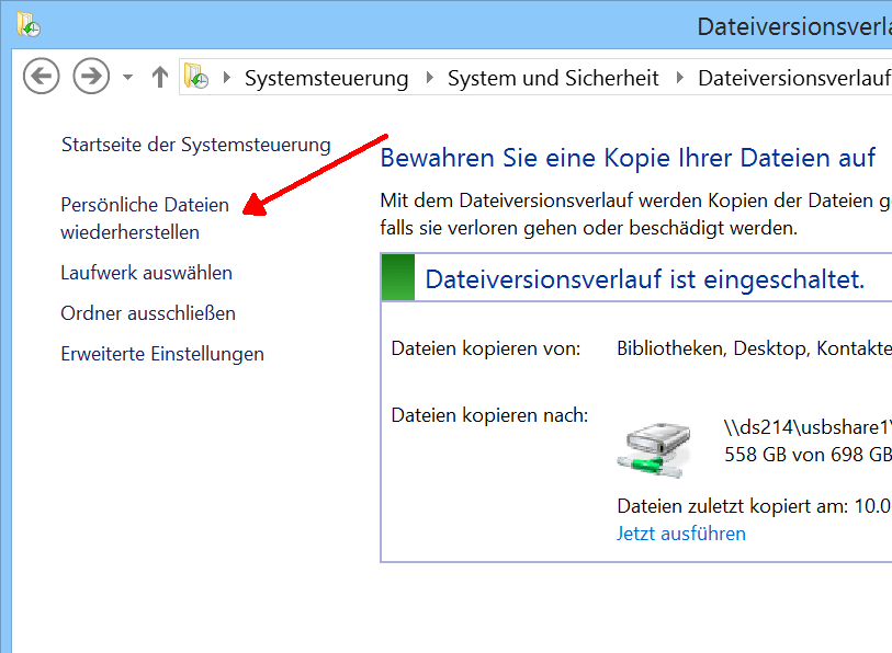 Sicherungsdateien mithilfe des Dateiversionsverlaufs wiederherstellen