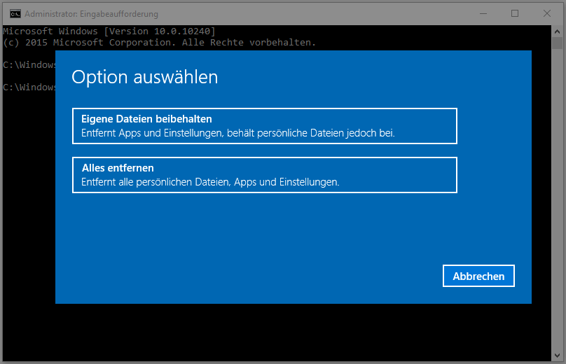 Also können Sie auch Windows 10 über die Befehlszeile zurücksetzen. Der Prozess wird unten gezeigt: