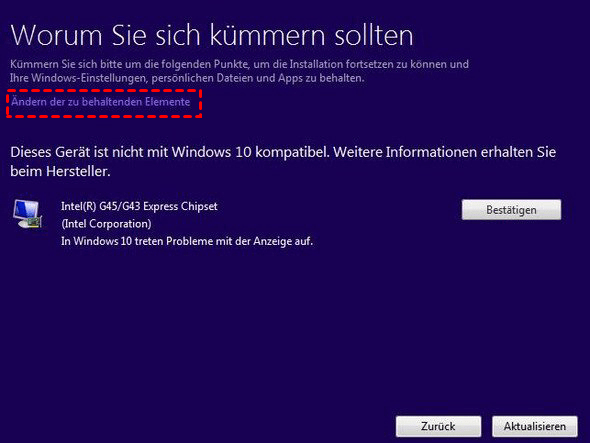 Schritt 6. Hier kehren Sie zum Bildschirm „Worum Sie sich kümmern sollten“ zurück, bestätigen die gewählte Option und klicken auf „Aktualisieren“.