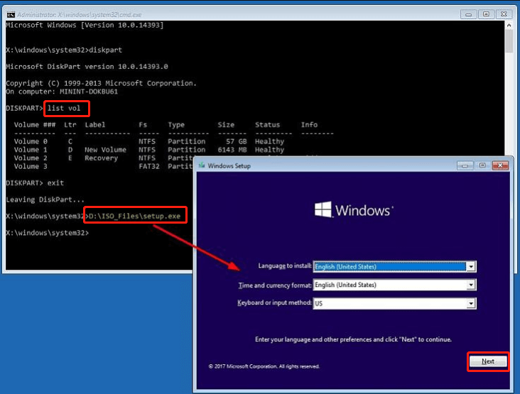 Methode 1. Windows 10 von CD mit der Eingabeaufforderung installieren