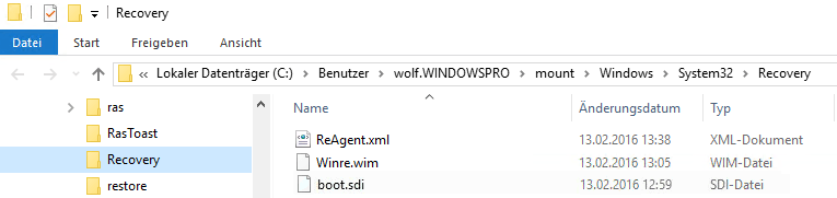 - Das WinRE basiert auf der Windows-Vorinstallationsumgebung (Windows PE) und besteht aus drei Dateien, darunter winre.wim, boot.sdi und ReAgent.xml.