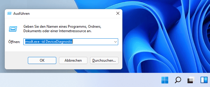 1. Drücken Sie Windows + R, um das Ausführen-Fenster zu öffnen. Geben Sie msdt.exe -id DeviceDiagnostic ein und drücken Sie die Eingabetaste.