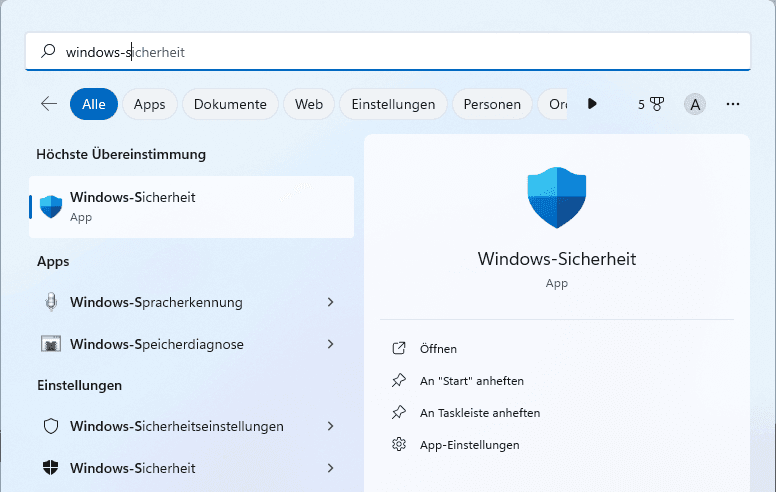 1. Suchen Sie nach Windows-Sicherheit im Suchfeld und klicken Sie auf das entsprechende Suchergebnis, um die Anwendung zu starten.