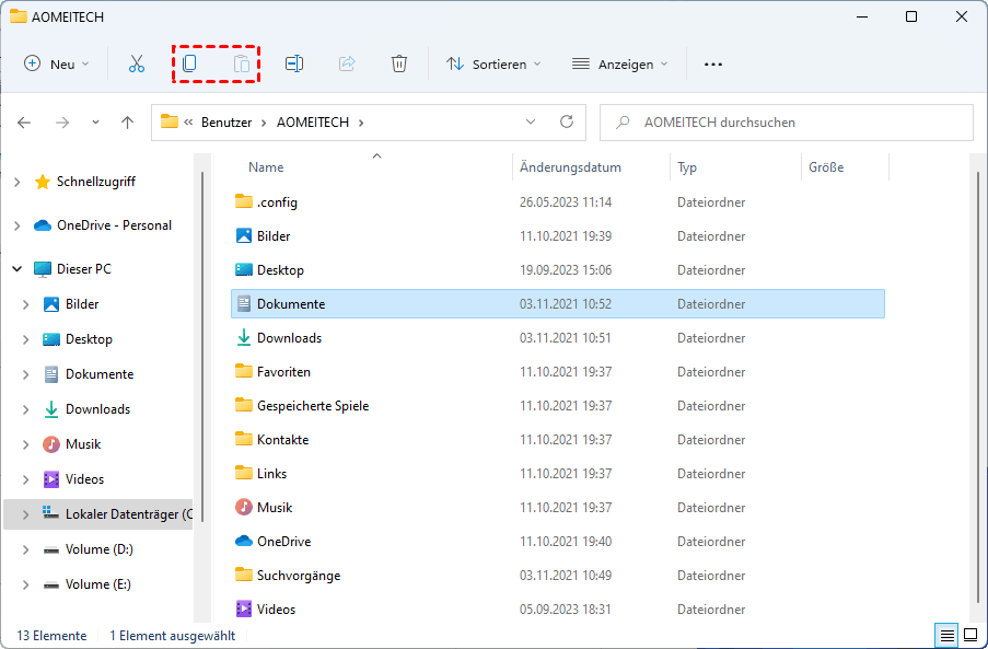 Schritt 5. Trennen Sie Ihre externe Festplatte von Ihrem alten PC und schließen Sie sie wieder an Ihren neuen PC an. Öffnen Sie anschließend den Datei-Explorer und kopieren Sie die Ordner, die Sie zuvor auf der externen Festplatte gespeichert haben, und fügen Sie sie auf Ihrem neuen PC ein.