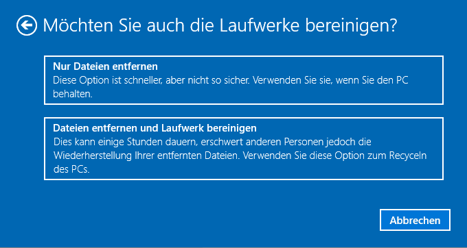 Schritt 5. Sie können Laufwerk vollständig bereinigenauswählen, wenn Sie Ihren Dell-Laptop auf Werkseinstellungen zurücksetzen möchten.
