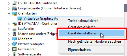 - Wählen und öffnen Sie den Grafikkarten. Klicken Sie mit der rechten Maustaste und wählen Sie Gerät deinstallieren.