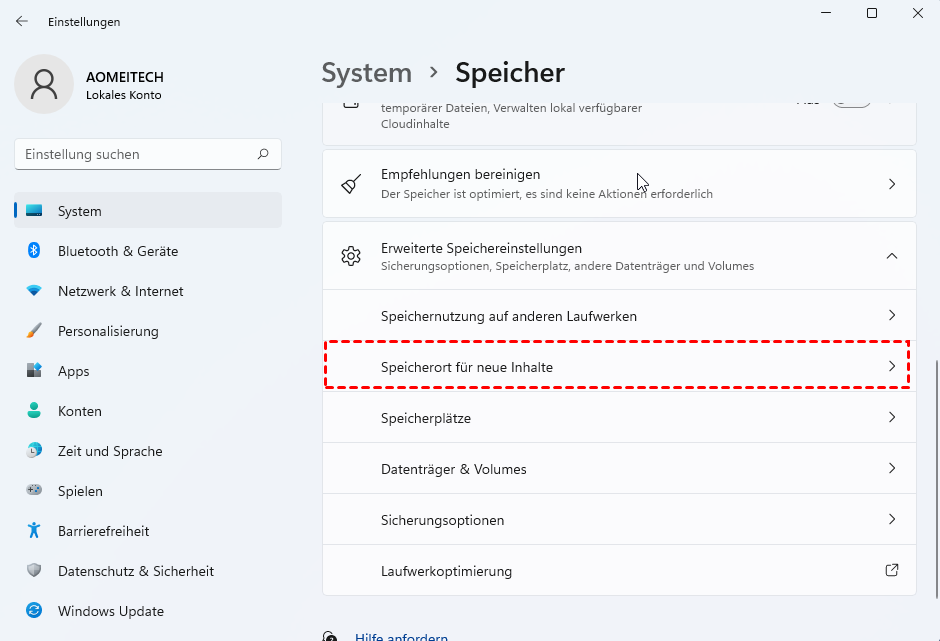 Schritt 1. Gehen Sie zu Einstellungen > System > Speicher > Erweiterte Speichereinstellungen.