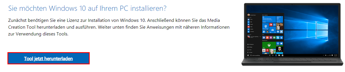 Schritt 1. Rufen Sie die Windows 10-Download-Seite auf der Microsoft-Website auf. Klicken Sie unter „Sie möchten Windows 10 auf Ihrem PC installieren?“ auf die Option Tool jetzt herunterladen.