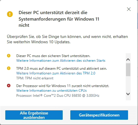 📝 Tipp: Wenn Ihr PC diese App nicht hat, können Sie hier PC Health Check herunterladen.
