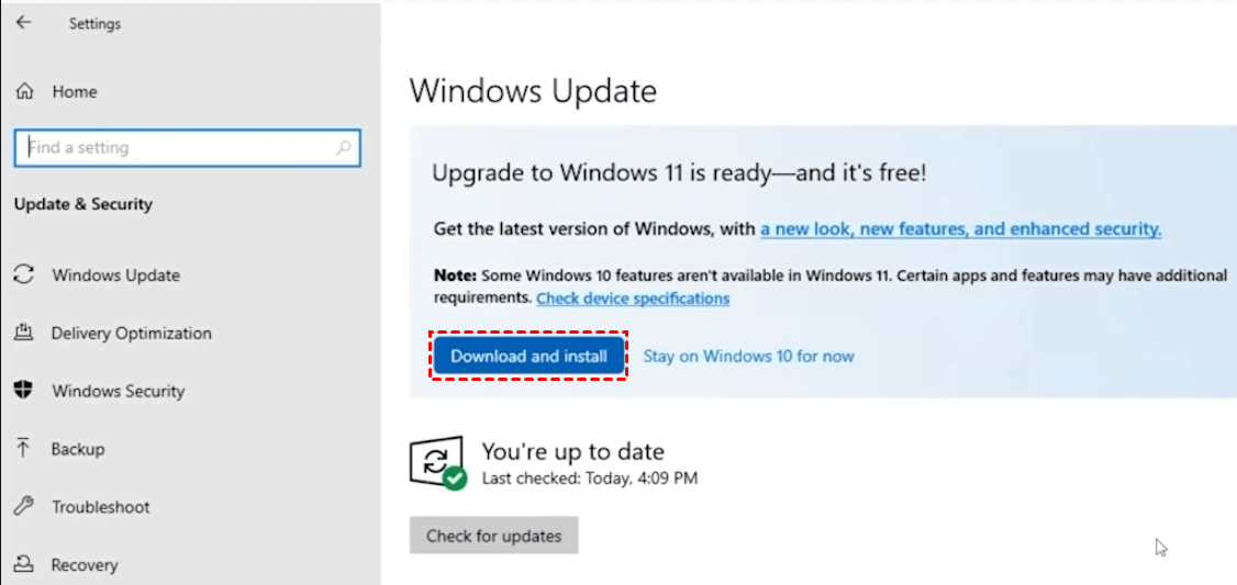 2. Klicken Sie im Banner „Upgrade auf Windows 11 ist bereit“ auf Herunterladen und Installieren.