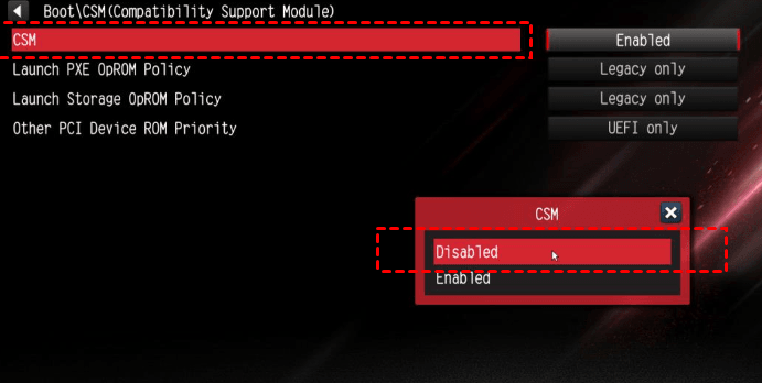 Bevor Sie die Secure Boot-Einstellungen ändern, stellen Sie sicher, dass Sie mit deaktiviertem CSM problemlos starten können.