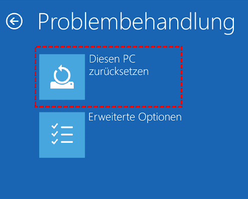 1. Wenn Sie WinRE starten, klicken Sie unter dem Fenster Problembehandlung auf Diesen PC zurücksetzen.