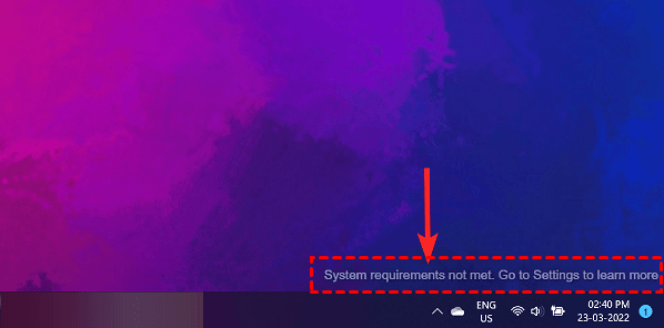Wenn Sie die Hardwareanforderungen von Windows 11 umgangen haben, wird Sie die Meldung „Systemanforderungen nicht erfüllt. Gehen Sie zu Einstellungen, um mehr zu erfahren.“ betreffen. Die zweite Möglichkeit ist, dass Ihr Computer unterstützt wird, aber es gibt Änderungen, z. B. die UEFI-Einstellungen, die TPM zugeordnet sind, die dazu führen, dass es nicht unterstützt wird. Die Meldung „Systemanforderungen nicht erfüllt“ unter Windows 11 erscheint dann auch unter Windows 11.