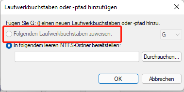 Wenn Sie einen anderen Laufwerksbuchstaben auswählen möchten, klicken Sie auf das Dropdown-Menü, wählen Sie den gewünschten Buchstaben aus und klicken Sie dann auf OK.