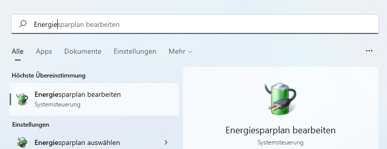 1. Öffnen Sie das Startmenü und geben Sie Energiesparplan bearbeiten ein. Wählen Sie das oberste Ergebnis.