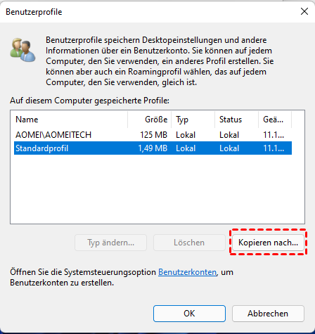 Wenn Sie ein Benutzerprofil von Windows 10 auf Windows 11 übertragen, gibt es einen offensichtlichen Unterschied zur Übertragung von Dateien. Bitte seien Sie immer vorsichtig und sichern Sie Ihr Profil im Voraus für den Fall eines Verlustes. AOMEI Backupper ist nicht nur eine ausgezeichnete Synchronisierungssoftware für Windows, sondern auch leistungsfähig beim Sichern von Windows 11 C-Laufwerk in einer guten Weise.
