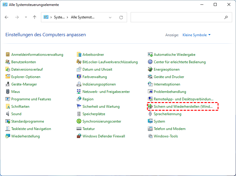 2. Öffnen Sie Sichern und Wiederherstellen (Windows 7) in der Systemsteuerung.