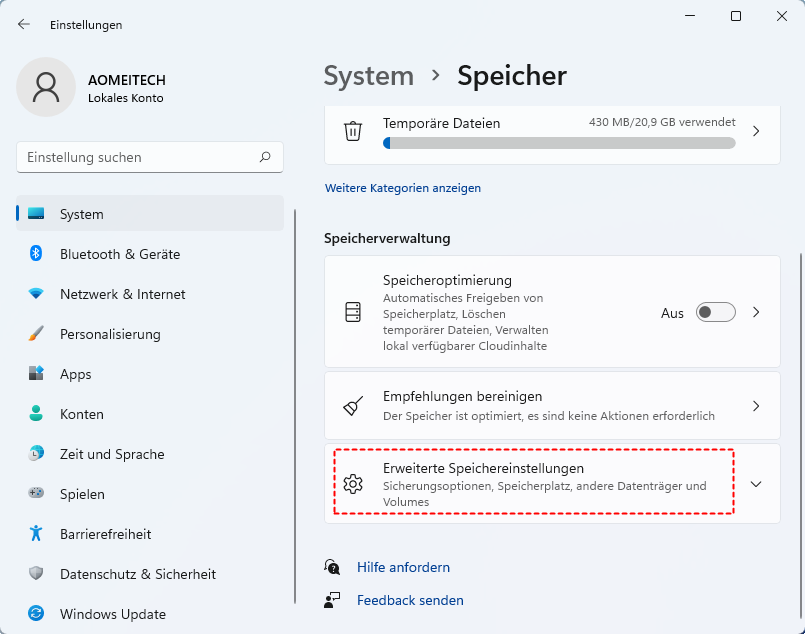 3. Klicken Sie auf der Seite Speicher auf Erweiterte Speichereinstellungen.