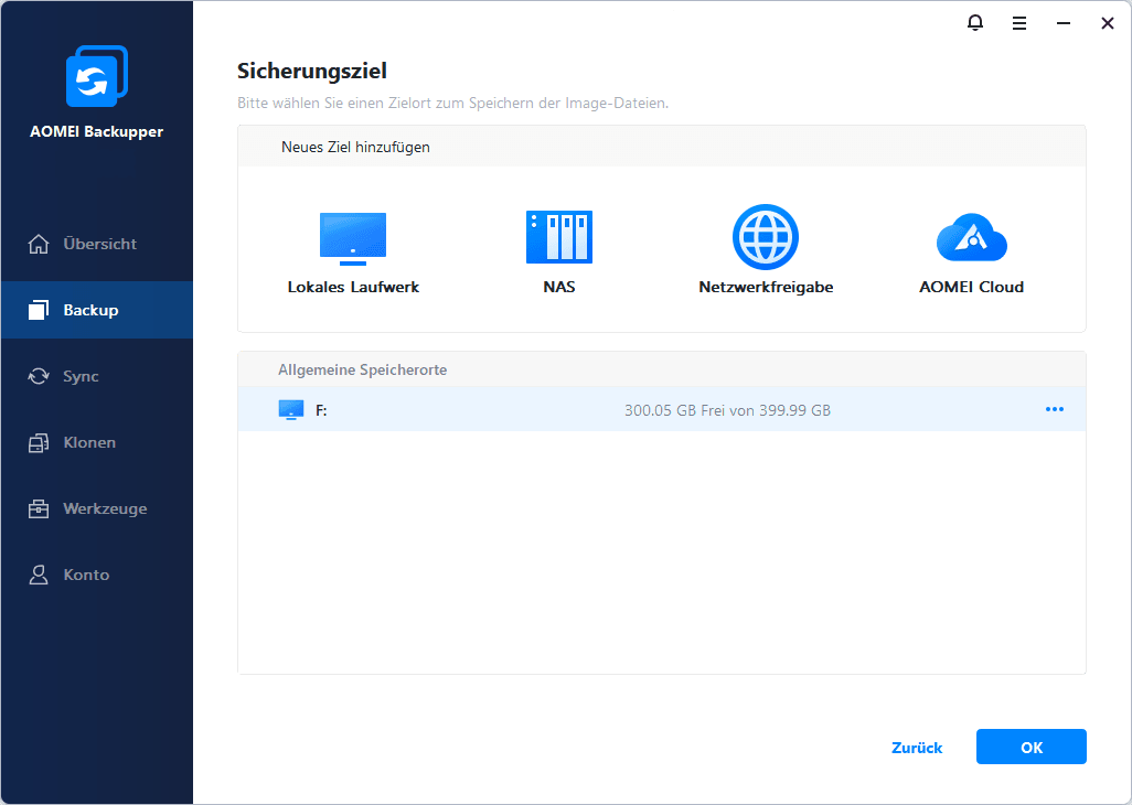 4. Wählen Sie dann einen Speicherort für Ihre Sicherung.