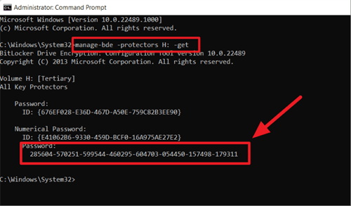 Hinweis 📝: Ersetzen Sie im obigen Befehl den Laufwerksbuchstaben H durch das Laufwerk, auf dem Sie den Wiederherstellungsschlüssel finden möchten.