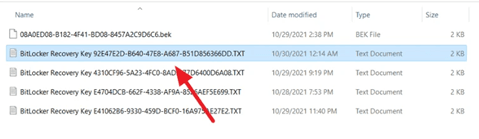 Wenn Sie Ihren Wiederherstellungsschlüssel gesichert haben, haben Sie ihn möglicherweise als Textdatei (.TXT) oder als „.BEK“-Datei auf Ihrem Computer gespeichert, wenn Sie die Option In einer Datei speichern gewählt haben. Wenn dies der Fall ist, können Sie sie im Datei-Explorer finden.