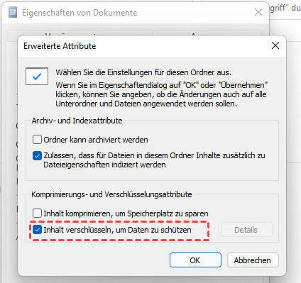 Fall 4. Windows 11 Dateiversionsverlauf funktioniert nicht bei EFS-Dateien