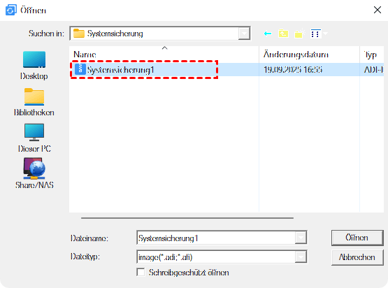 Schritt 2. Finden Sie das Windows 10 Backup-Image und klicken Sie auf Öffnen.