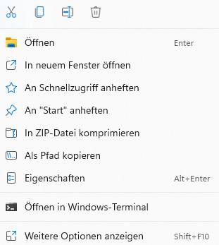 Wie wird das vollständige Rechtsklickmenü in Windows 11 standardmäßig geöffnet?