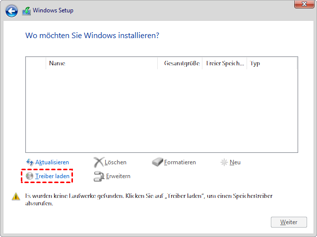 Wenn Sie feststellen, dass Windows 11 Installation kein Laufwerk findet und die Meldung „Es wurden keine Laufwerke gefunden“ ausgibt, versuchen Sie bitte, die entsprechenden Treiber während des Windows-Installationsprozesses zu laden.