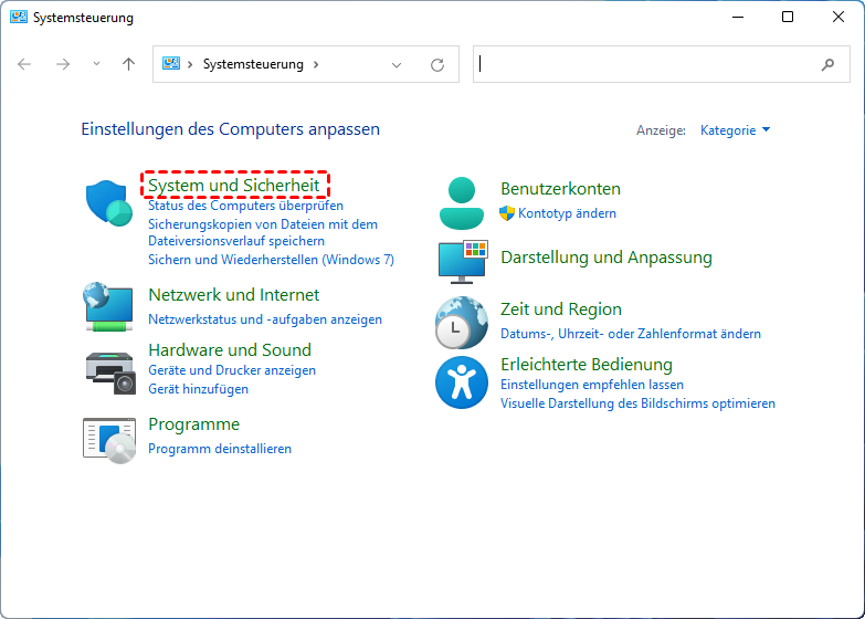 - Gehen Sie zu Systemsteuerung > System und Sicherheit > Sichern und Wiederherstellen (Windows 7).