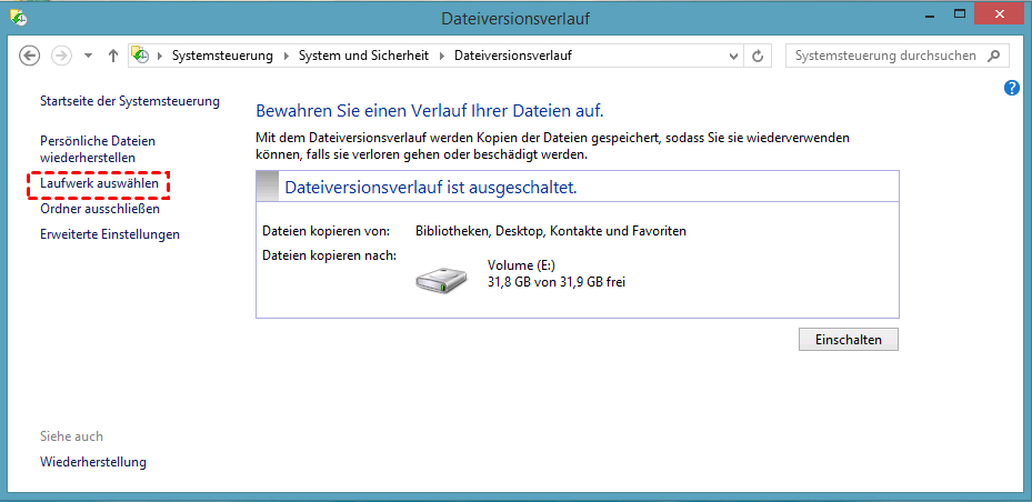 #2. Windows 11 lokale Sicherung auf Festplatte mit Dateiversionsverlauf erstellen