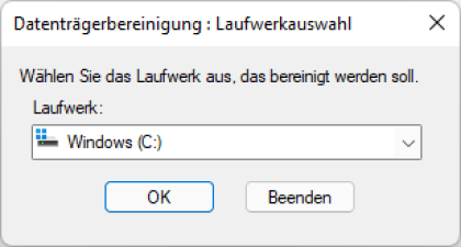 Methode 1. Windows 11 Speicherplatz freigeben durch Datenträgerbereinigung