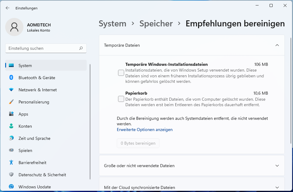 Methode 2. Windows 11 Speicherplatz freigeben durch Speichereinstellung