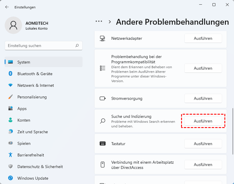 Windows-Geräte verfügen über ein integriertes Problembehandlungstool, das alle größeren und kleineren Probleme beheben kann. Die Verwendung der Problembehandlung für Suche und Indizierung sollte die meisten Suchfehler der Benutzer lösen. Befolgen Sie die folgenden Schritte: