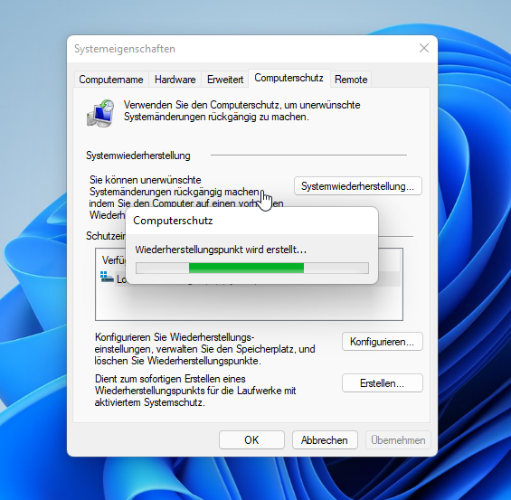 Windows 11 Systemwiederherstellungspunkt erstellen
