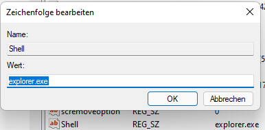 5. Vergewissern Sie sich im Fenster Zeichenfolge bearbeiten, dass der Wert explorer.exe lautet. Wenn es keinen Wert gibt, geben Sie bitte den Wert explorer.exe ein. Klicken Sie dann auf OK.