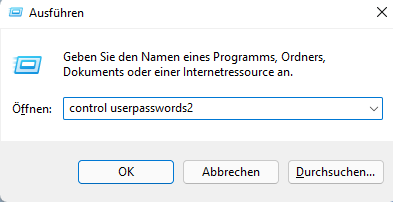 Schritt 1. Drücken Sie Win + R, um das Fenster Ausführen zu öffnen. Geben Sie control userpasswords2 ein und klicken Sie auf OK.
