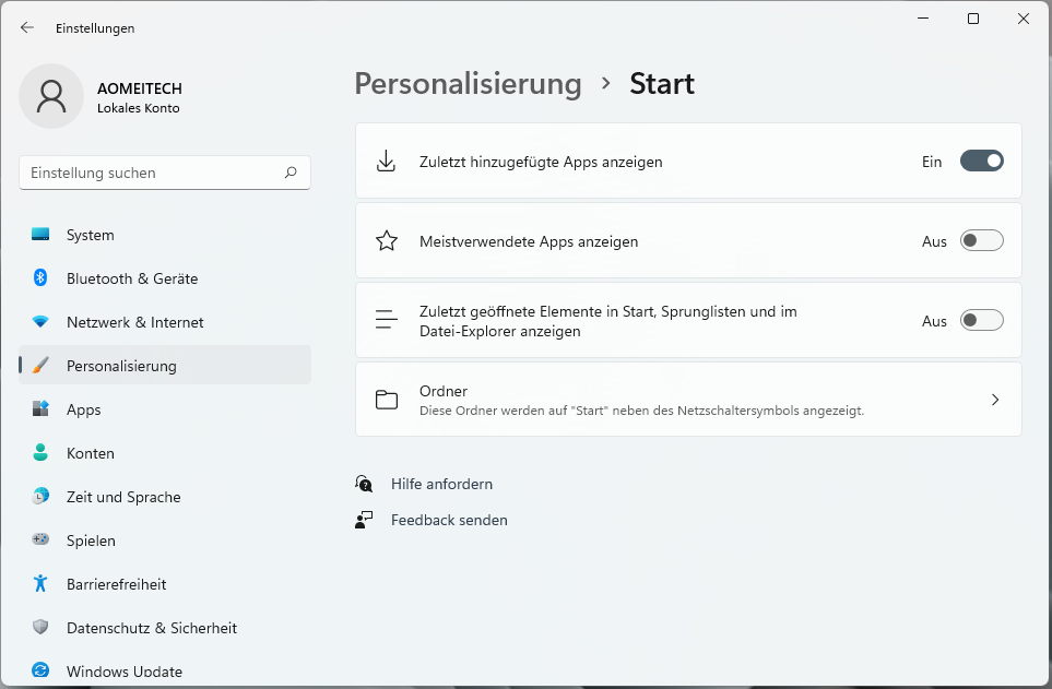 Windows 11 zuletzt verwendete Dateien entfernen über die Einstellungen