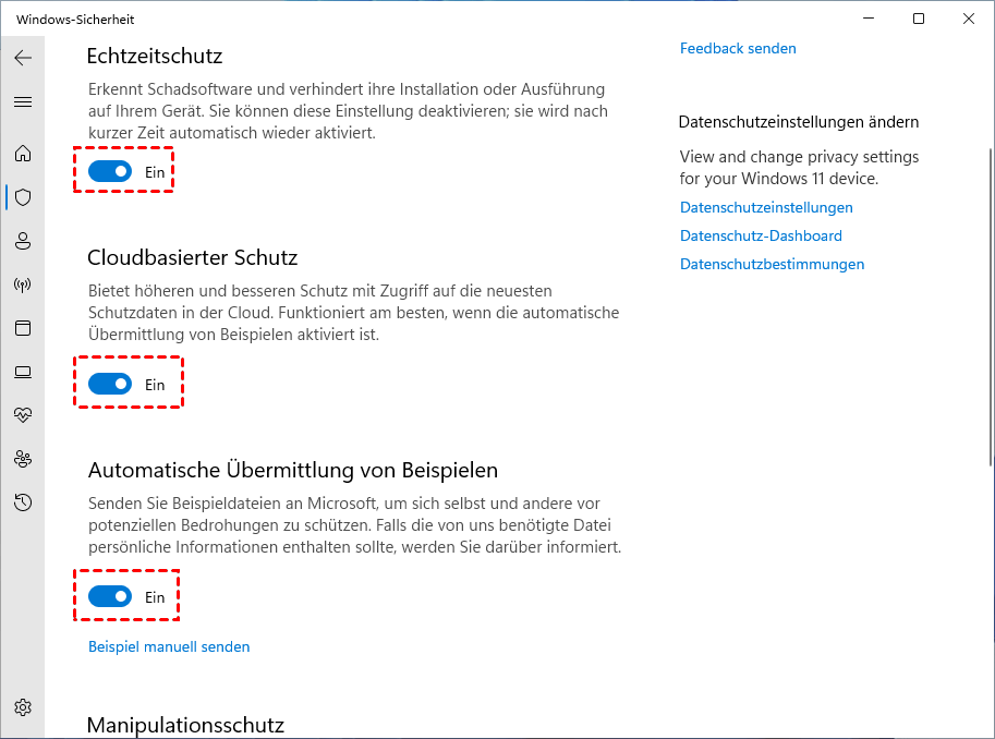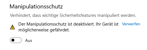 1. Bevor Sie beginnen, sollten Sie den Manipulationsschutz in der Windows-Sicherheit ausschalten. Navigieren Sie zu Windows-Sicherheit > Viren- und Bedrohungsschutz > Einstellungen verwalten > Manipulationsschutz.