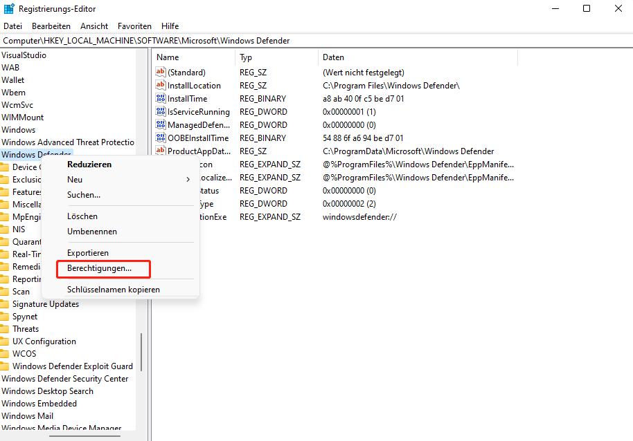 Eine andere Möglichkeit, Windows Defender dauerhaft zu deaktivieren, ist der Registrierungs-Editor. Führen Sie die folgenden Schritte aus, um Windows Defender auf Ihrem Windows 11-Rechner zu deaktivieren.