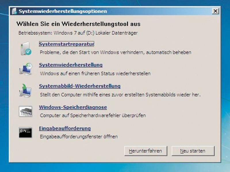 ► Das System mit Windows-Systemwiederherstellungsoptionen wiederherstellen