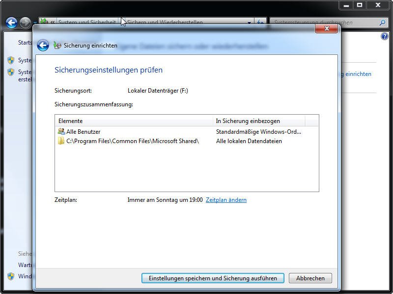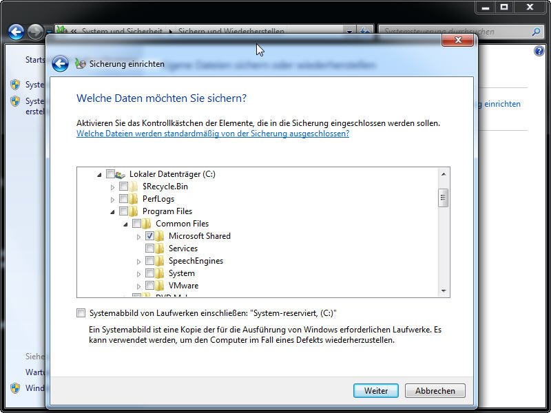 Durch Sichern und Wiederherstellen werden das Windows-Betriebssystem, die Systemeinstellungen, einzelne Ordner, Bibliotheken und Laufwerke gesichert, die Sie sichern möchten.