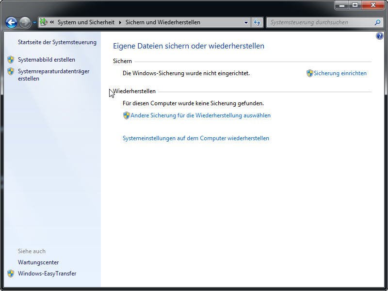 1. Gehen Sie auf Start und geben Sie „sichern“ ein oder klicken Sie auf „Systemsteuerung“ > „System und Sicherheit“ > „Sichern und Wiederherstellen“. Dann klicken Sie auf „Sicherung einrichten“, um die ersten Sicherung zu erstellen.